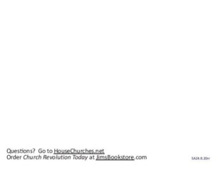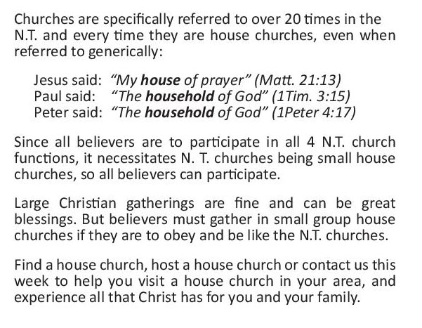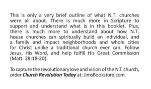 If you want to know more about this subject you can order the book by the same author, Church Revolution Today. Over 6,000 house churches were started and over 60,000 people were saved and baptized by Christians who read and followed this New Testament church model and New Testament leadership model written in Church Revolution Today.