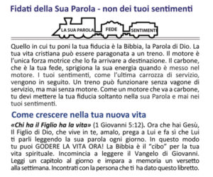 Questo è l’opuscolo del Vangelo più facile da dare a chiunque in qualsiasi momento. Ogni volta che ho distribuito questo opuscolo evangelico a chiunque e ho detto: “Ecco qualcosa che ha significato molto per me nella mia vita e vorrei dartelo!” Non ha mai fallito, guardano sempre con un sorriso e una piacevole sorpresa, come se nessuno avesse mai dato loro niente, e dicono sempre “Grazie mille.” Puoi lasciarlo con loro, o, naturalmente, puoi sempre leggerlo pensato con loro e spesso vedere la persona ricevere Cristo proprio allora. Niente è più eccitante della condivisione del Vangelo!